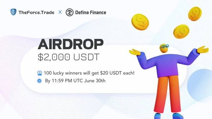 🔥TheForce.Trade and DefinaFinance are jointly giving away 20 USDT each to 100 lucky winners for easy social tasks.