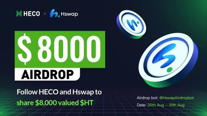 🔥HECO and Hswap are jointly airdropping a total $8,000 worth Huobi Token (HT) for easy social tasks.
