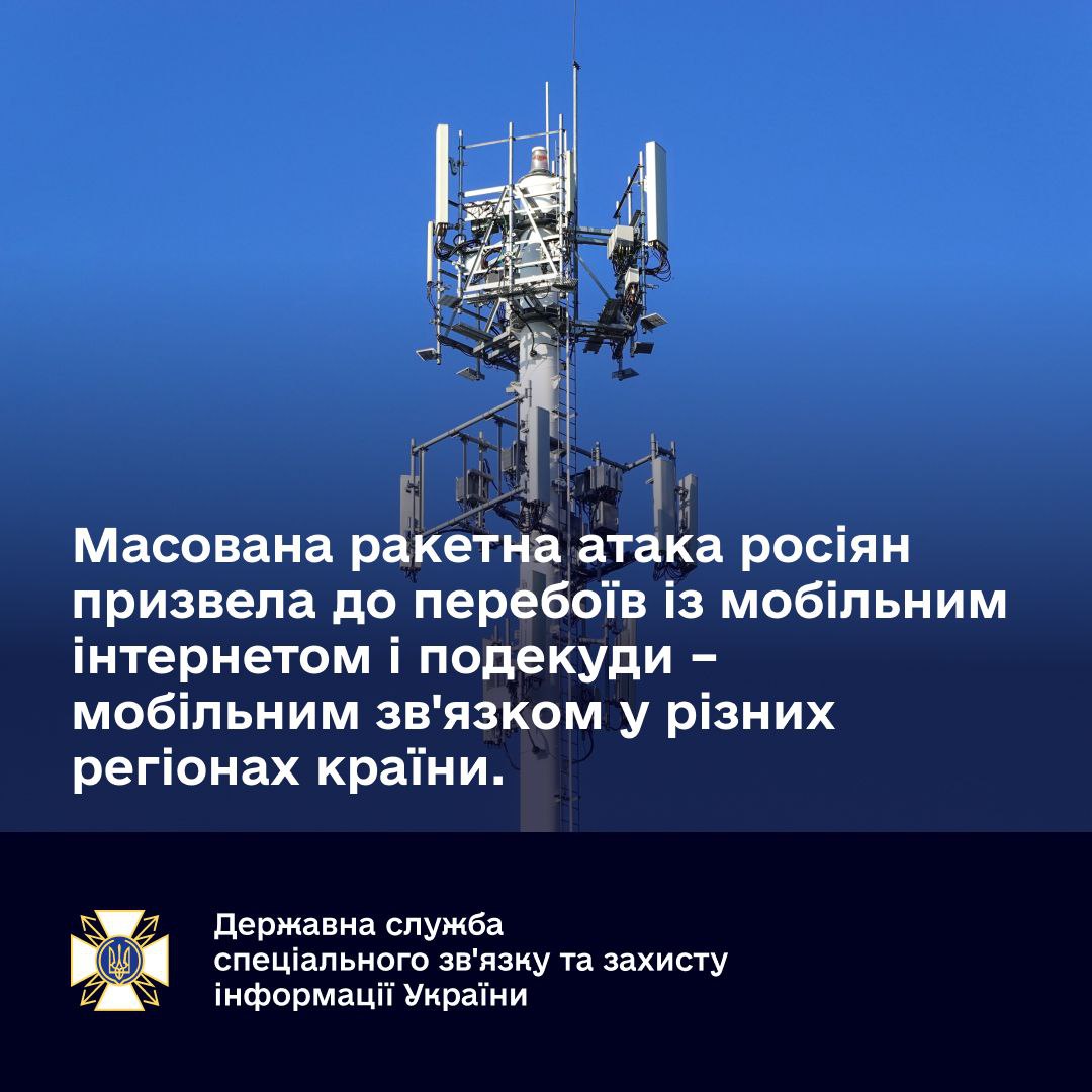 🚀 Масована ракетна атака росіян призвела до перебоїв із мобільним інтернетом і подекуди – мобільним зв'язком у різних регіонах країни.