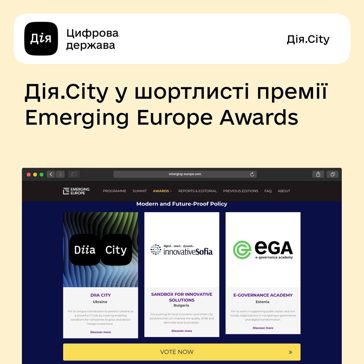 Тільки вперед! Дія.City в шортлисті премії Emerging Europe Awards🥳