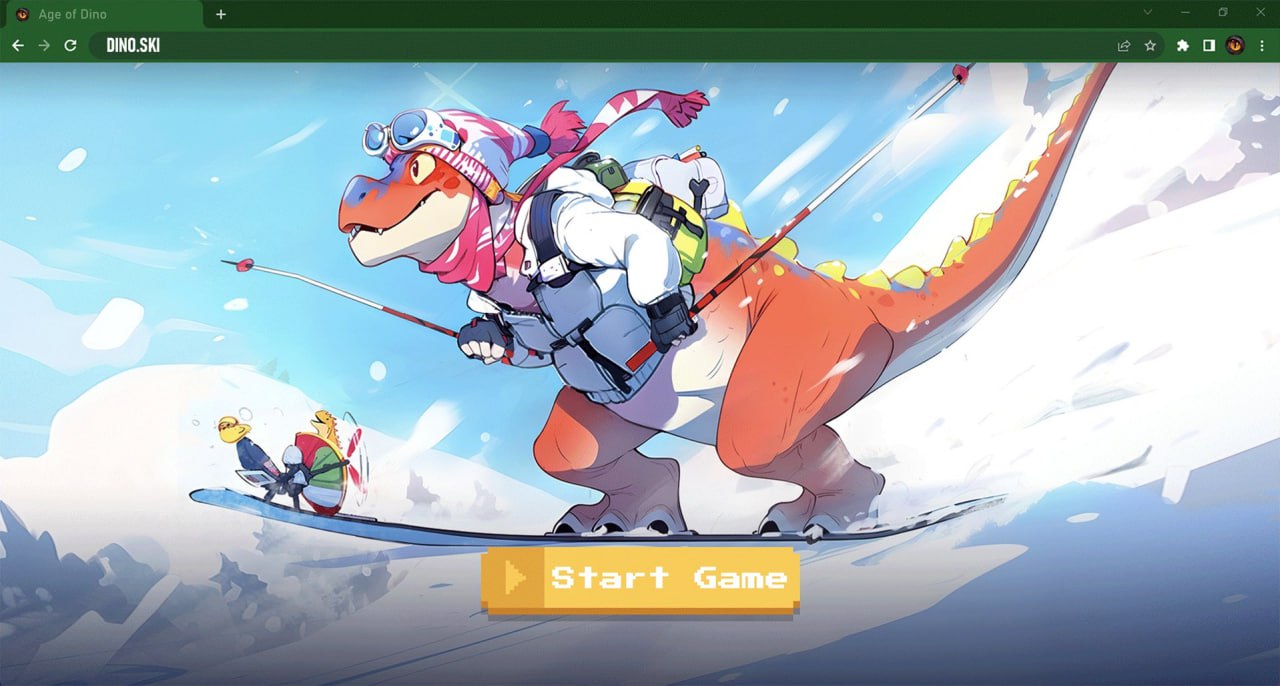 Игра называется Dino Ski. Игра супер простая, она почти точь в точь напоминает игру в хроме, когда у вас нет интернета. Тот самый черно-серый бегущий динозаврик.