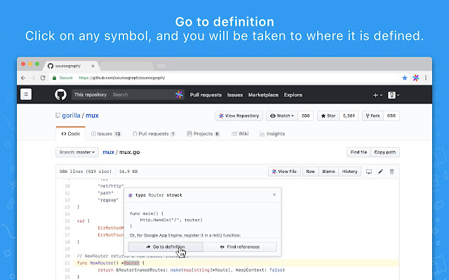 افزونه Sourcegraph ابزاریست که قابلیت intelligence را به کد های Github شما میدهد و توسط آن میتوانید 3 عمل زیر را به راحتی انجام دهید