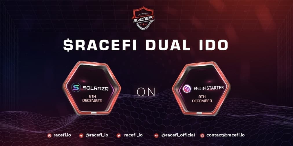 📅 IDO по проекту RaceFi пройдет на SolRazr 8 декабря и на Enjinstarter 9 декабря.