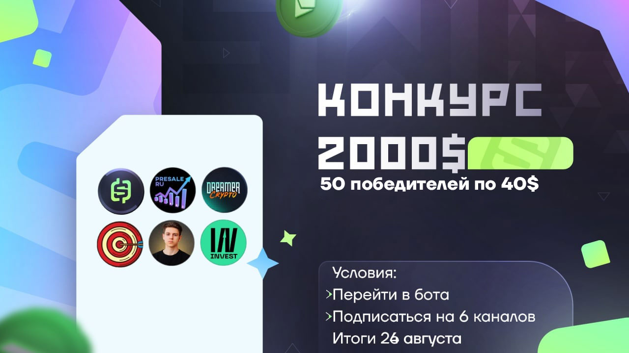ℹ️Cовместно с крипто-каналами, мы анонсируем розыгрыш на 2000 вечно деревянных $.