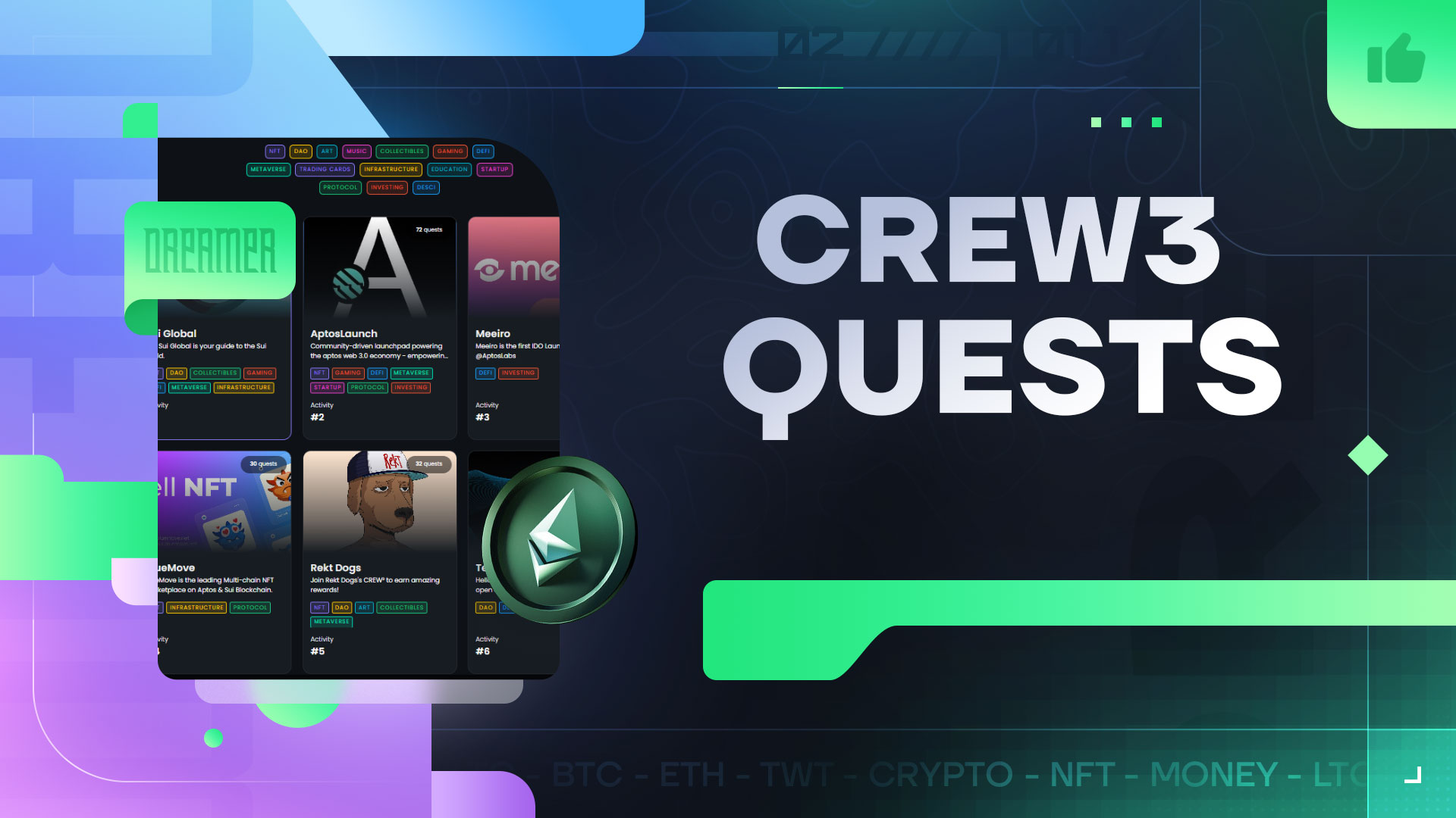 ℹ️ В последнее время стали замечать, Crew3 набирает медленно, но верно популярность. Своей простотой и новизной полностью заменила наш старый добрый Gleam😥. В данном посте мы вас посвятим в парочку крутых проектов на разных блокчейнах и их активности!