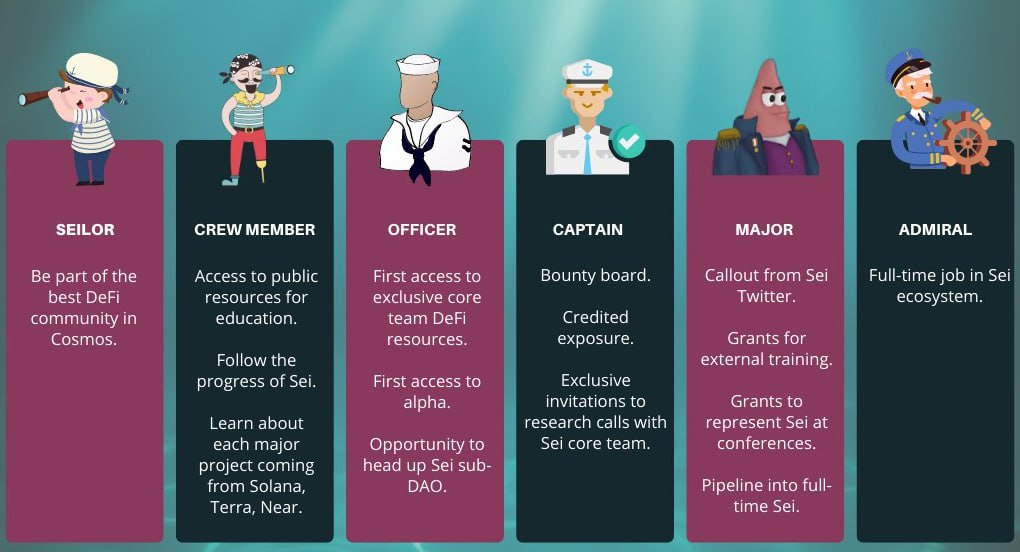 💬 У проекта Sei Network проходит интересная многоуровневая амбассадорская программа, в которой с достижением роли капитана мы можем расчитывать на гарантированный дроп токенов и другие приколы.