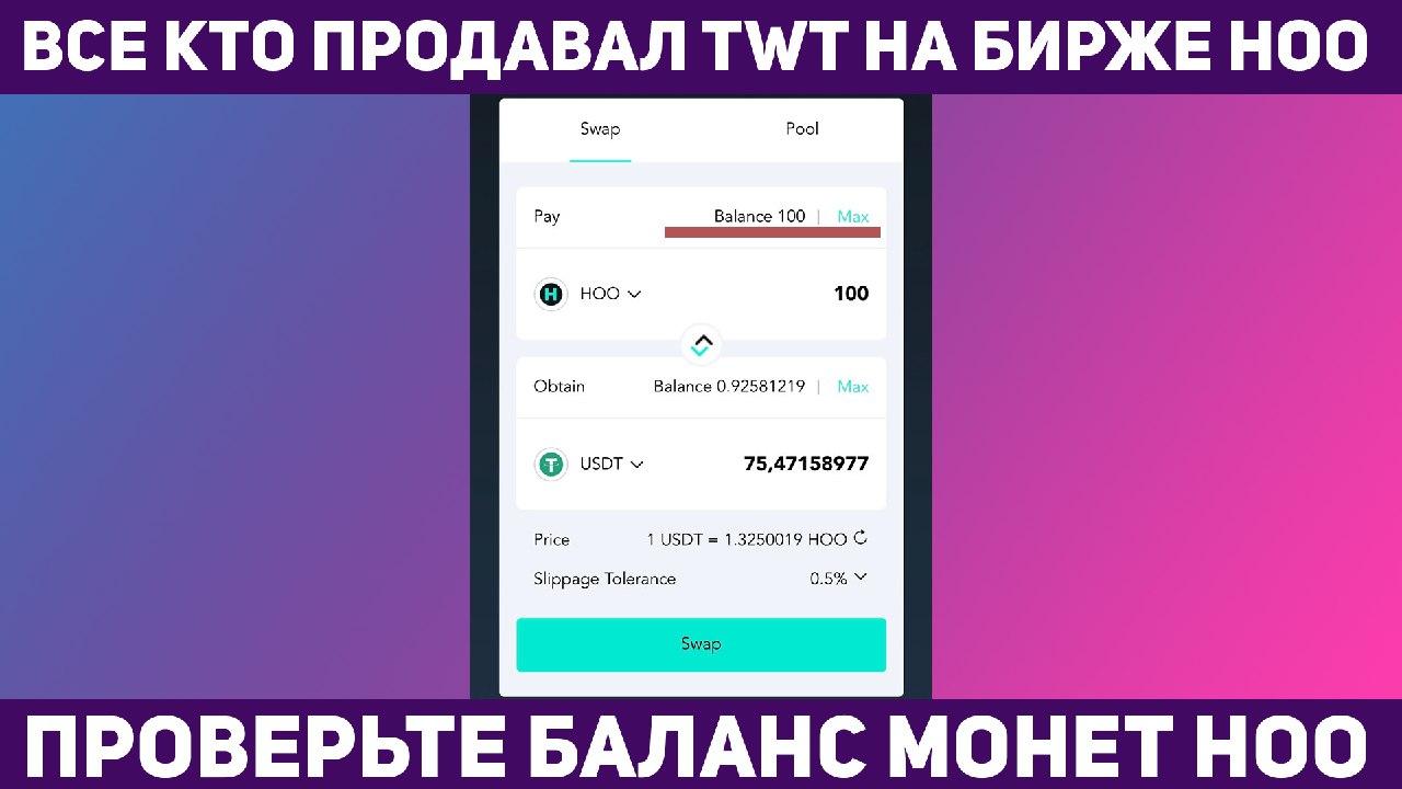 • Проверяем есть ли у вас Hoo и если есть, то свапаем их на USDT и радуемся)