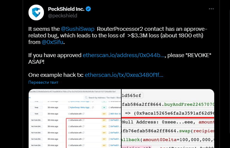 ℹ️ Уже известно о крупных потерях, одна из них это 1800 ETH. На теперяшний момент больше $3,3 млн ушли на кошельки мошенников...