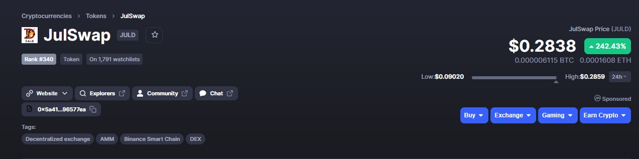 Помните раздачу от обменника JulSwap за холд монет JUL?