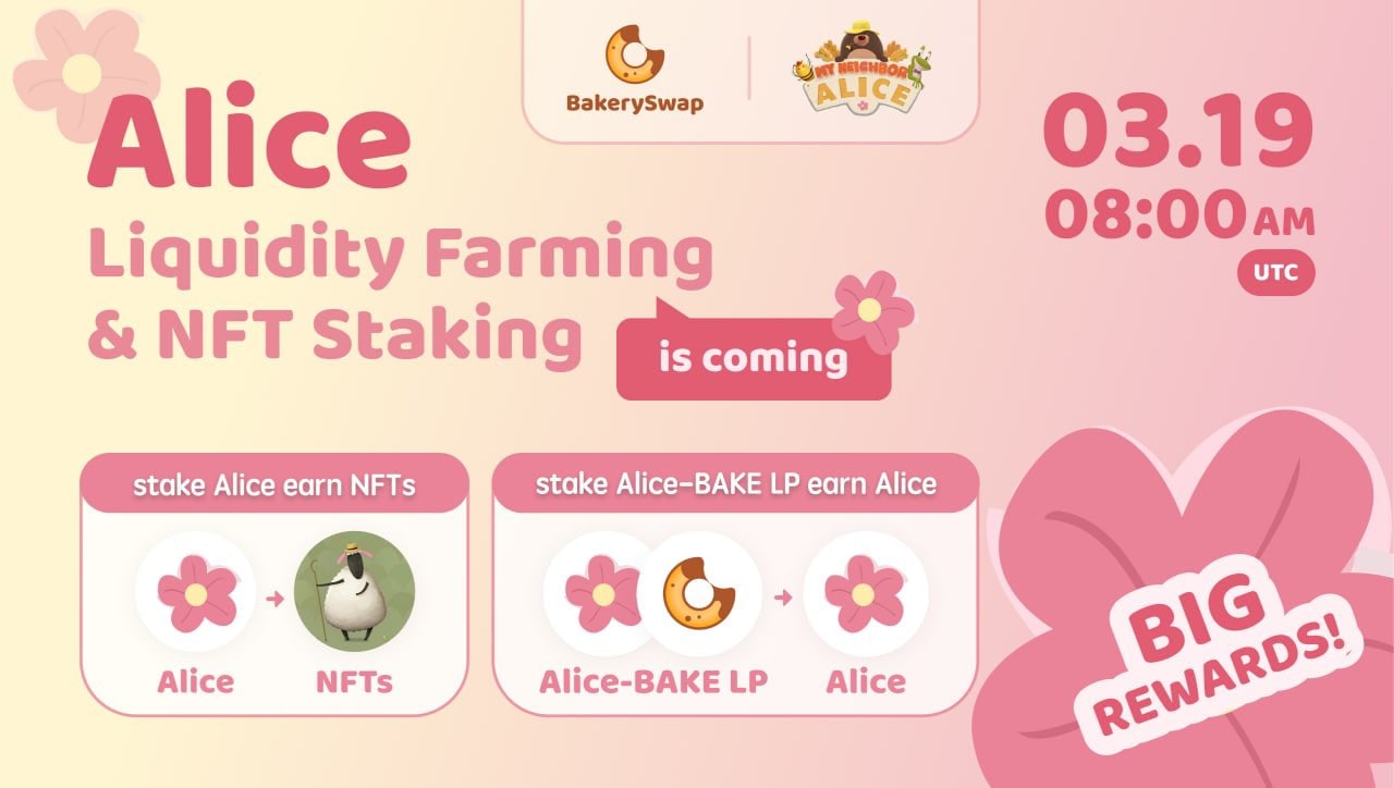 📌Stake $Alice - $BAKE LP to earn $Alice