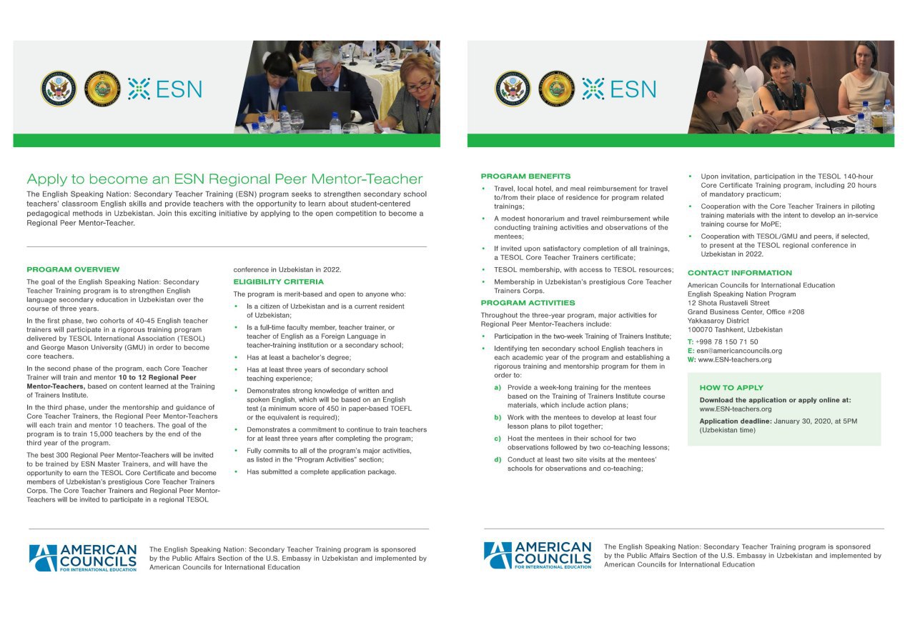 Apply today and become an ESN Regional Peer Mentor-Teacher Trainer!💪