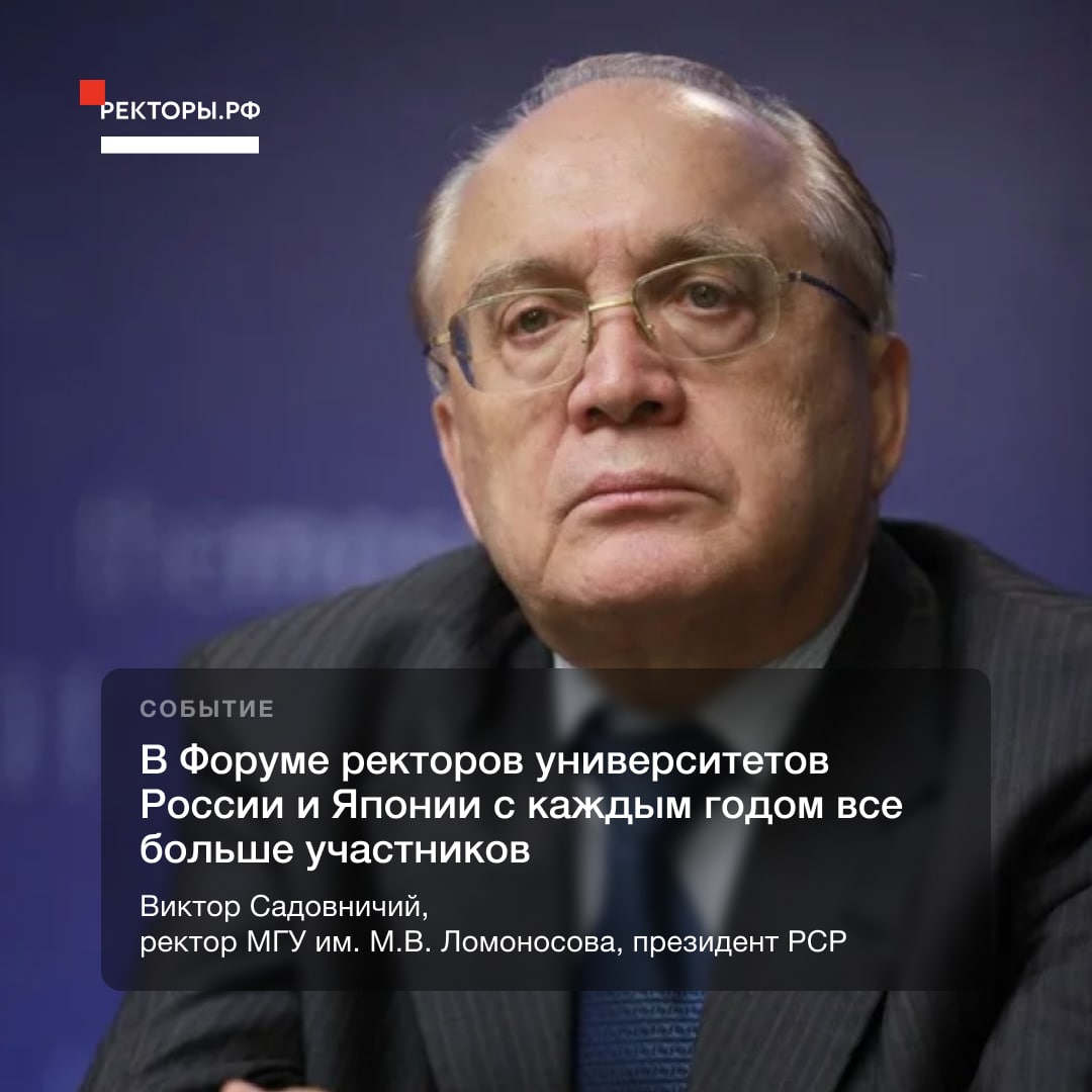 «От форума к форуму растет количество университетов, работающих на этой международной и междисциплинарной платформе образовательной кооперации и научной дипломатии. Отрадно, что университеты – инициаторы создания Форума ректоров университетов России и Японии – уже давно стали не только модераторами многогранного диалога вузов двух стран, но и участниками развиваемых на двухсторонней основе проектов, которые становятся все более заметными механизмами обмена идеями, технологиями и инновациями», – отметил Виктор Садовничий.