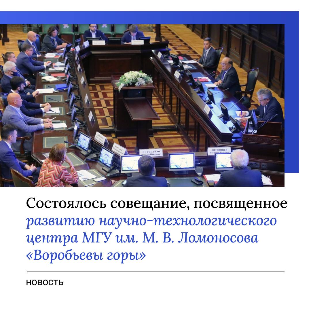 Совещание, посвященное развитию научно-технологического центра МГУ им. М. В. Ломоносова «Воробьевы горы»