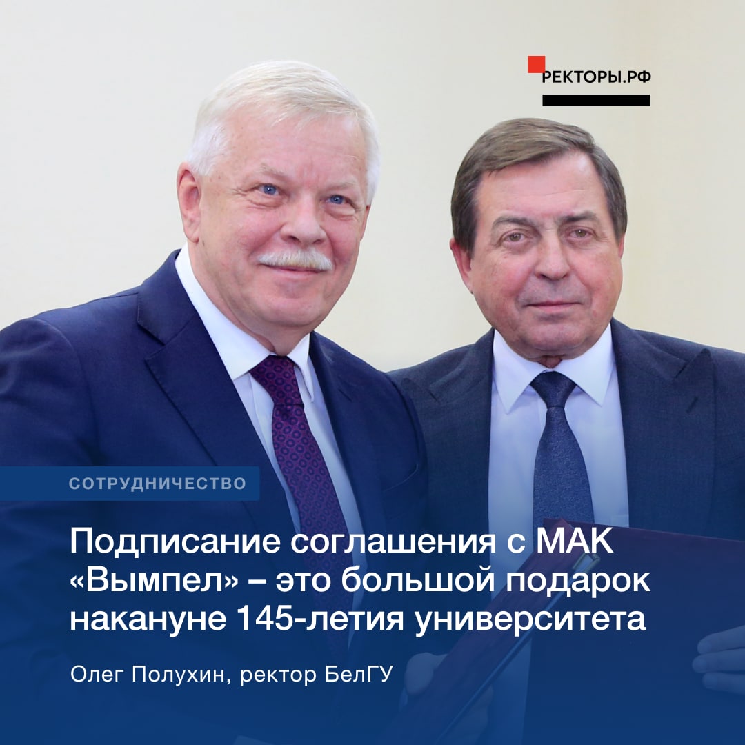 Подписание соглашения с МАК «Вымпел» – это большой подарок накануне 145-летия нашего университета, которое отмечается 26 сентября».