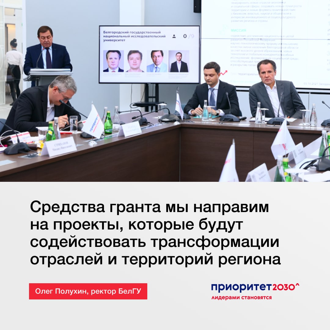 «Белгородский государственный национальный исследовательский университет стал обладателем и базового гранта в размере 100 млн рублей ежегодно, и специальной части по треку «Территориальное лидерство», размер которой будет определяться раз в два года по итогам работы.