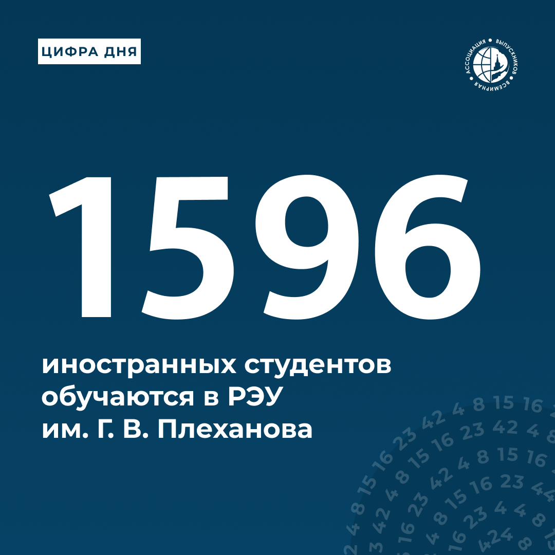 🏛 В Российском экономическом университете им. Г. В. Плеханова обучается 1596 иностранных студентов из 86 стран мира, что составляет 9,56% от общего числа обучающихся.