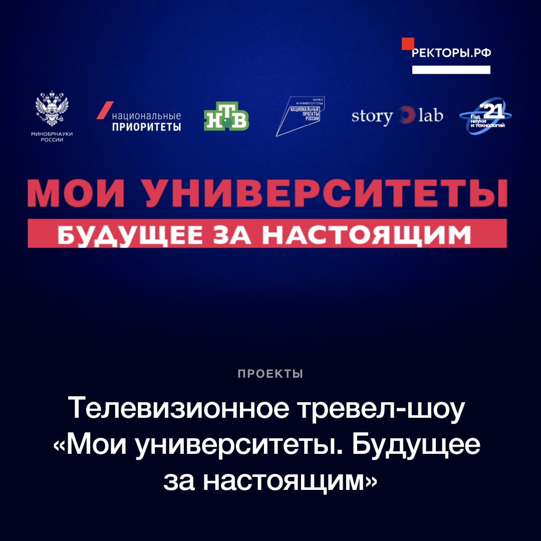 «Мои университеты. Будущее за настоящим» – это ТВ-проект в формате тревел-шоу о крупнейших российских вузах. Шоу позволит выпускникам и преподавателям по-новому взглянуть на университеты в регионах России. Телепроект будет интересен и родителям, чьи дети в скором времени закончат обучение в школах. В каждом из выпусков ведущие рассказывают о важных, уникальных и востребованных в современном мире профессиях и перспективах.