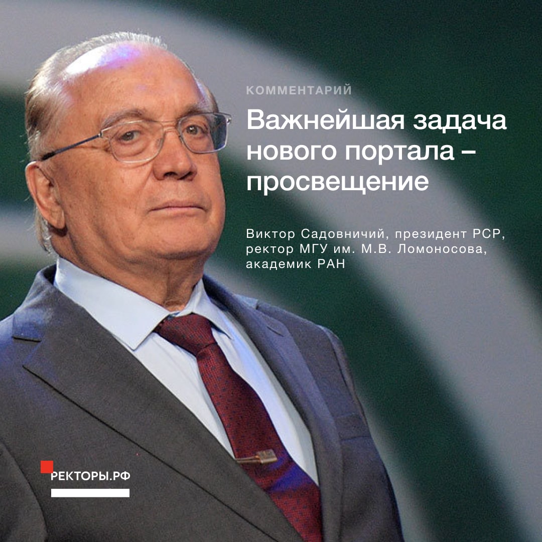 «Важнейшая задача нового портала – просвещение. Он должен быть таким, чтобы им могли пользоваться современные дети, чтобы он увлекал их. Для этого стоит задействовать все передовые возможности современных технологий. Это позволит доносить до школьников достоверную информацию в удерживающих их внимание форматах», – отметил президент РСР, ректор МГУ им. М.В. Ломоносова, академик РАН Виктор Садовничий.