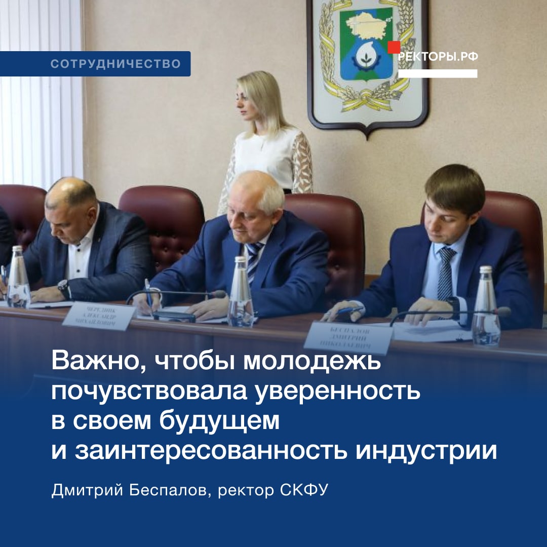 Университет планирует реализацию ряда программ, модернизацию образовательной структуры, создание восьми современных лабораторий. Важно, чтобы местная молодежь почувствовала уверенность в своем будущем и заинтересованность индустрии», – сказал ректор Северо-Кавказского федерального университета Дмитрий Беспалов.