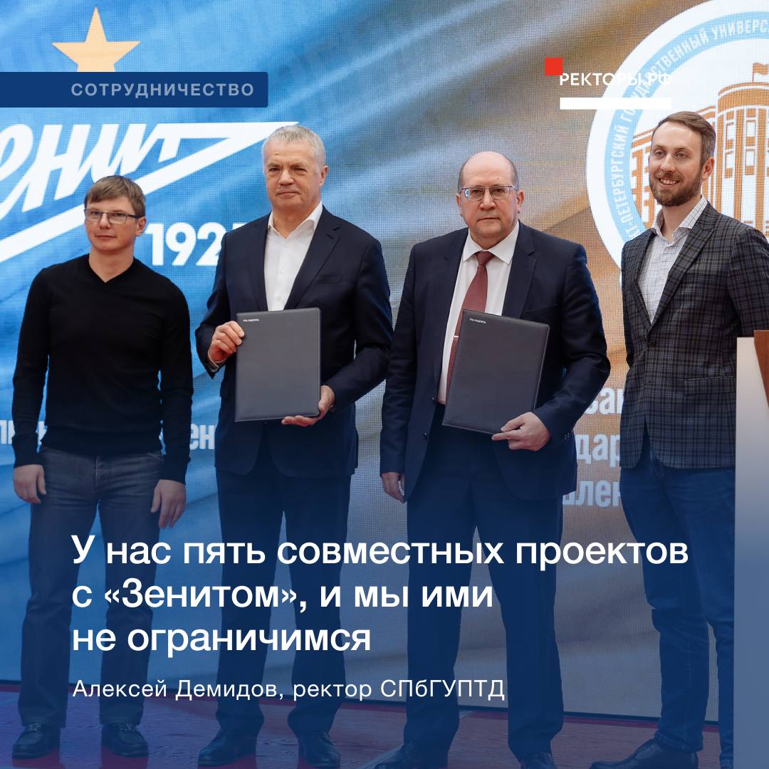 Стороны также наметили проекты в рамках экологической повестки и темы «умной» одежды и материалов. ФК «Зенит» вошел в консорциум «Цифровой промышленный дизайн, композиционные материалы, «умные» одежда и ткани», созданный СПбГУПТД для реализации программы отраслевого развития.