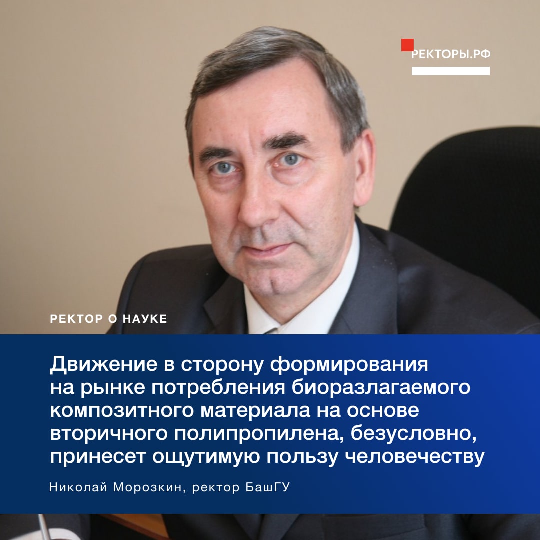 Николай Морозкин: «Для нас огромная честь и гордость, что разработка «Биоразлагаемый полимерный композиционный материал на основе вторичного полипропилена» БашГУ вошла в топ-10 изобретений XXI века»