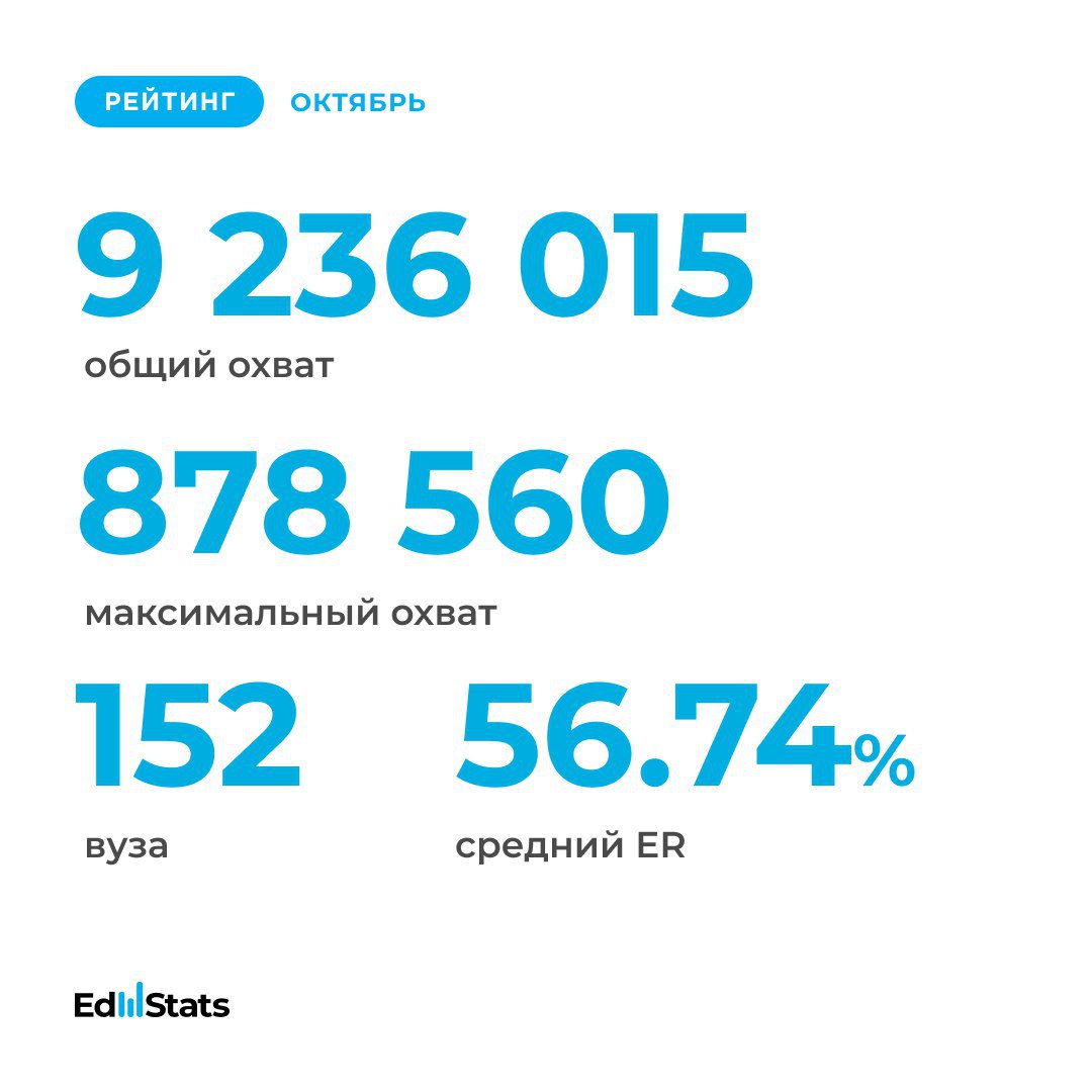 ⚡️ Уважаемые коллеги, руководители вузов, пресс-службы и студенты! Встречайте ВОСЬМОЙ рейтинг вузов в Telegram от @Edstats. В новом октябрьском исследовании приняло участие 192 официальных канала университетов.