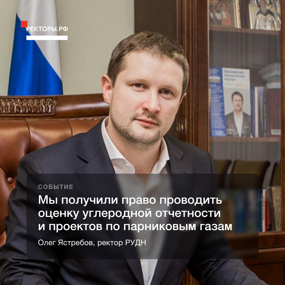 Закон «Об ограничении выбросов парниковых газов» был принят в июле этого года. РУДН подал заявление на прохождение аккредитации. В ноябре по результатам выездной оценки, которую проводила экспертная группа Национального института аккредитации Росаккредитации, РУДН получил статус органа по валидации и верификации парниковых газов. Соответствующий приказ был подписан 11 ноября.