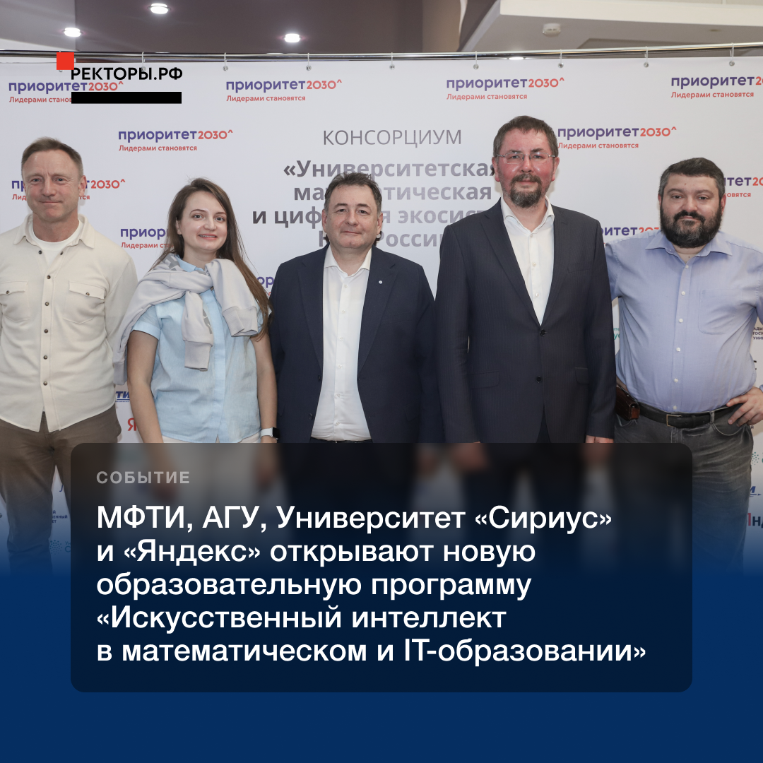 МФТИ, Адыгейский государственный университет, Университет «Сириус» и компания «Яндекс» открывают новую образовательную программу «Искусственный интеллект в математическом и IT-образовании»