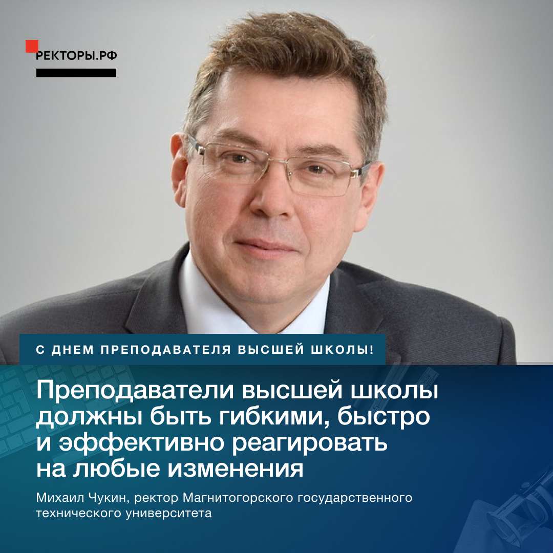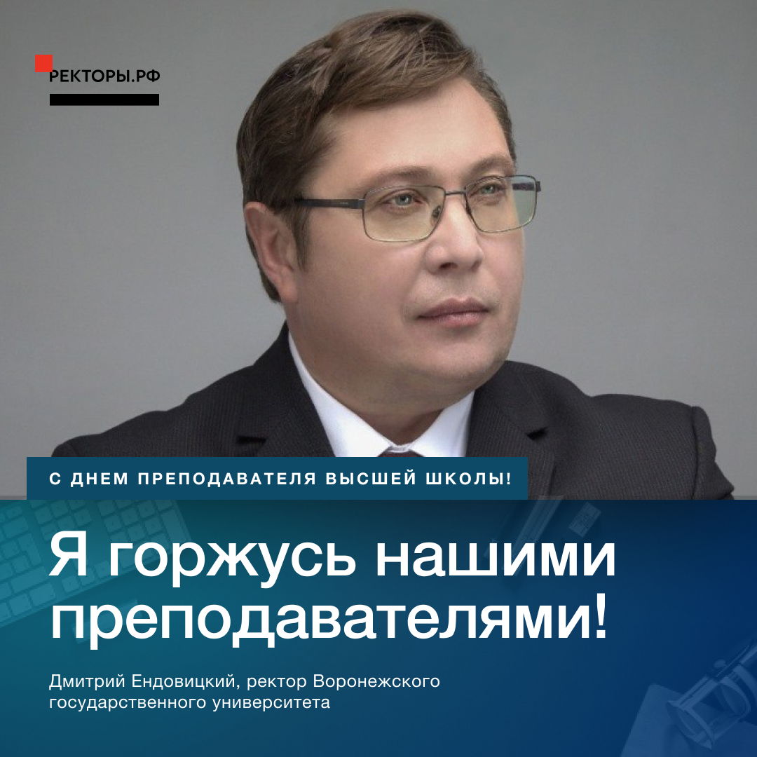 «Уважаемые коллеги! От всей души поздравляю вас с Днем преподавателя высшей школы! Решение главы Минобрнауки РФ Валерия Фалькова об установлении праздничной даты подчеркивает ценность и востребованность в России труда преподавателей, их значимую роль в воспитании и профессиональном становлении молодежи. И не случайно датой праздника выбрано 19 ноября — день рождения основателя Московского государственного университета, великого российского ученого, философа и литератора Михаила Ломоносова.