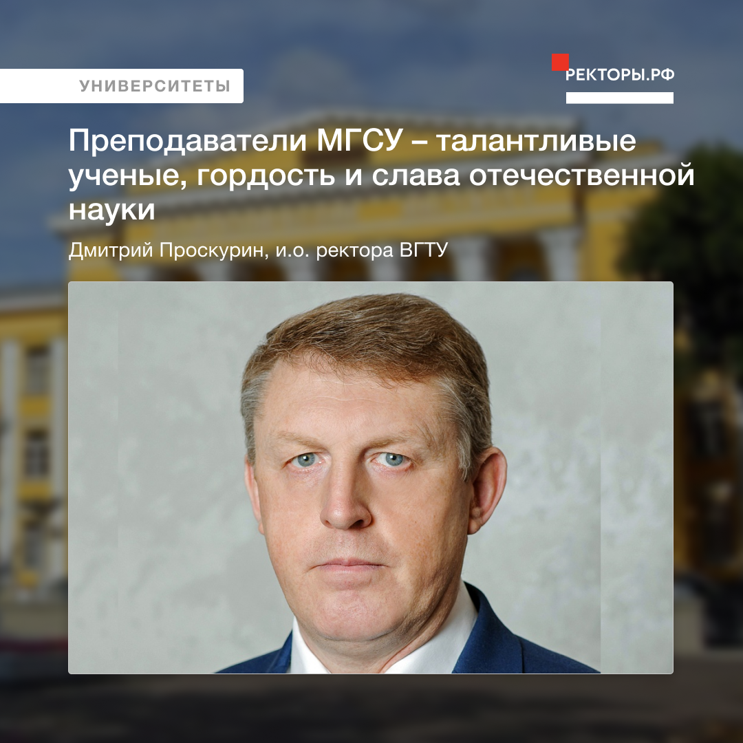 Особо стоит отметить, что преподаватели МГСУ – талантливые ученые, гордость и слава отечественной науки! Они бережно хранят и приумножают славные традиции, заложенные своими коллегами-предшественниками. Убежден, что накопленный опыт и уникальный научный потенциал позволят вузу и в дальнейшем добиваться новых высот в исследовательской и образовательной деятельности.