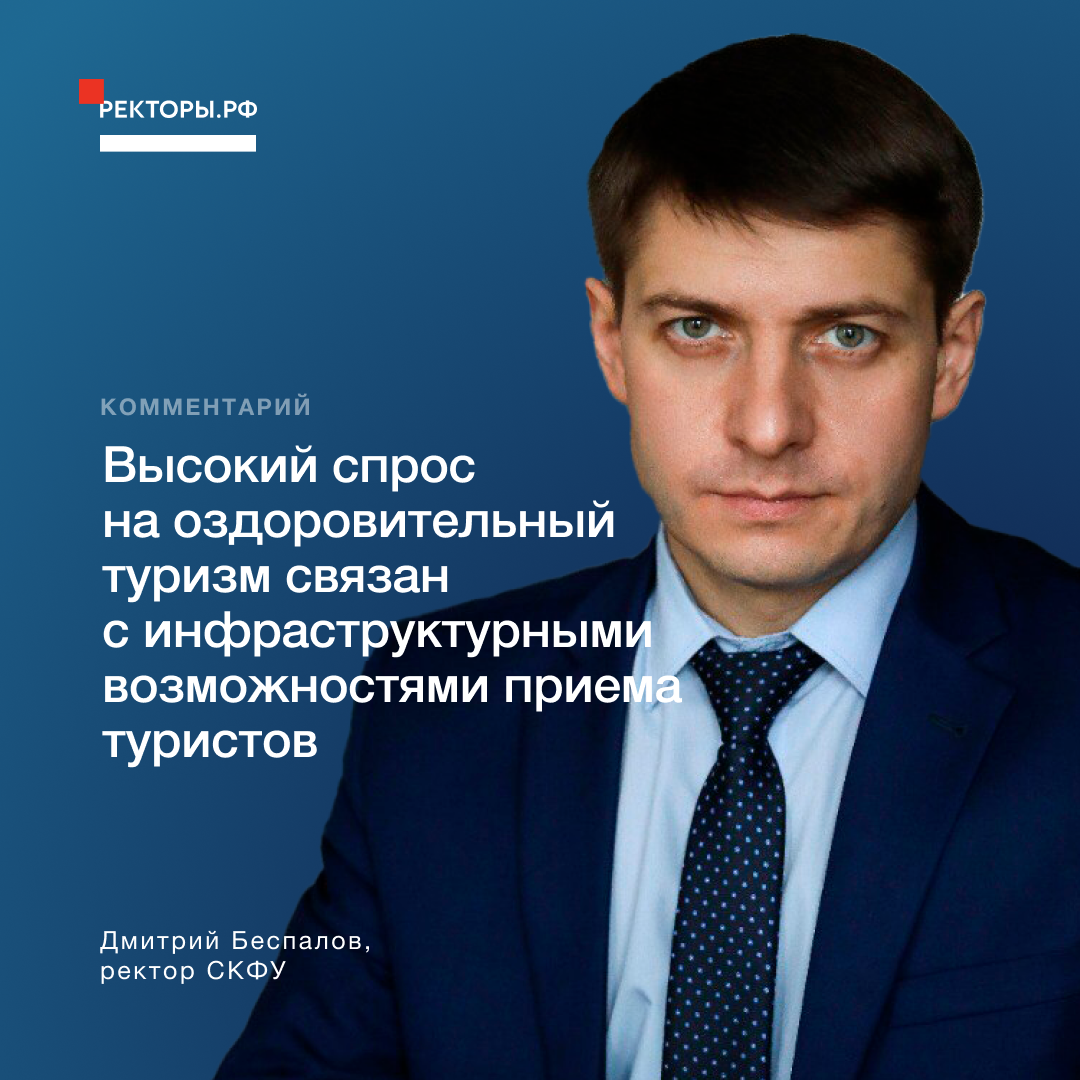 «Проведенные нашим университетом аналитические исследования показали, что свыше 60% туристского потока на Северный Кавказ – это любители санаторно-курортного отдыха, порядка 20% – лыжники, сноубордисты и альпинисты, а более 15% приходится на культурно-познавательный туризм. Высокий спрос на оздоровительный туризм связан не только с тем, что Северный Кавказ интересен россиянам как бальнеологический регион, но и инфраструктурными возможностями приема туристов».