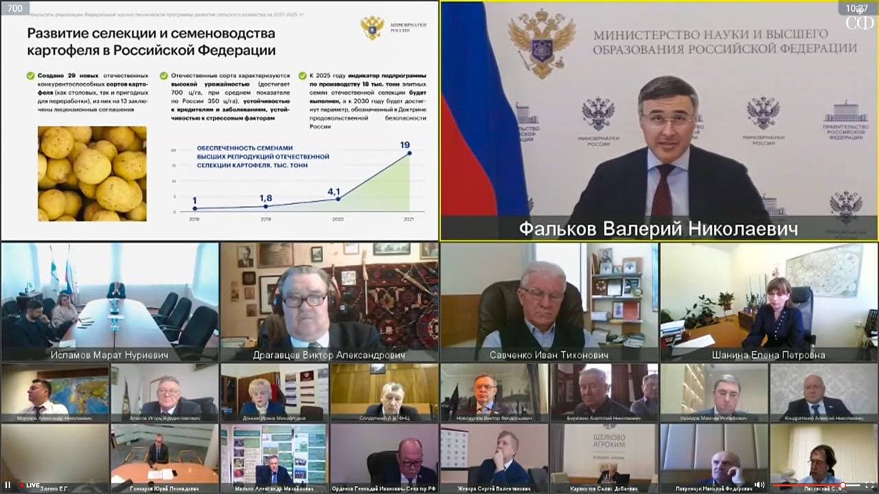 В соответствии с Доктриной продовольственной безопасности России подведомственным Минобрнауки России научным организациям необходимо произвести 30 тыс. тонн элитных семян картофеля. Для достижения этого показателя Министерство создало восемь молодежных лабораторий в области генетики и селекции картофеля и шесть селекционно-семеноводческих центров, а также выделило дополнительное финансирование для приобретения сельскохозяйственной техники и лабораторного оборудования.