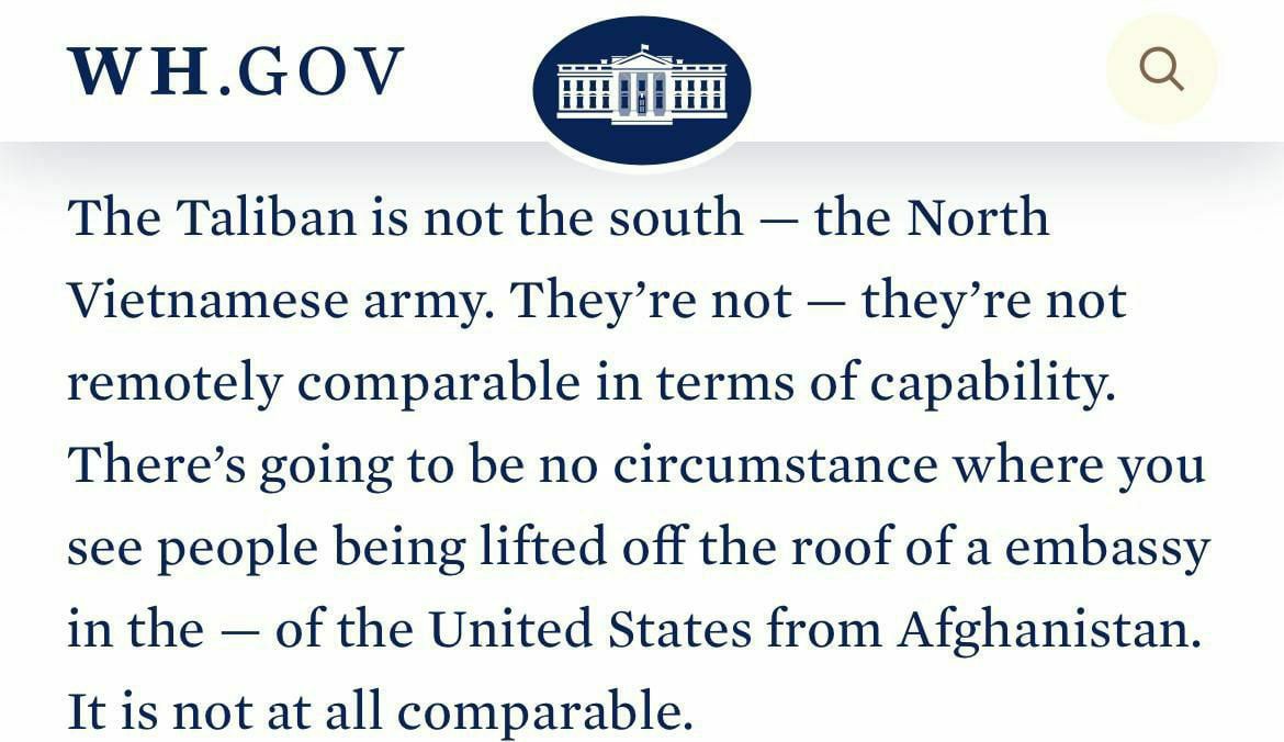 На фото – відносно недавня заява "байденутого" Білого дому про те, як не буде "як в Південному В'єтнамі".