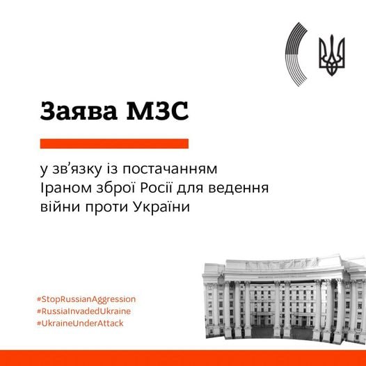 На виконання доручення Президента України вжити невідкладних заходів реагування на факти використання військами РФ зброї іранського виробництва на території України, до МЗС України було викликано тимчасового повіреного в справах Ірану в Україні.