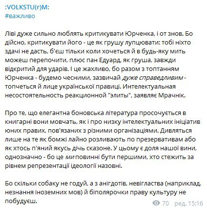 Синку, зроби хоча б десяту частину того, що я зробив для правого руху та заслужи хоча б десяту частину ненависті від ліваків, яку маю я, а вже потім щось кукарікай 😉