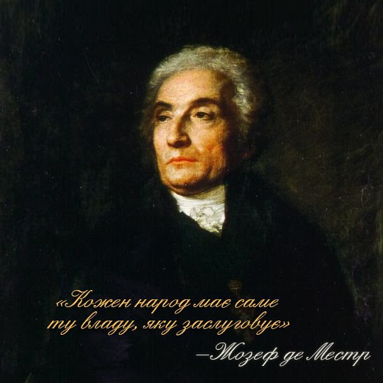 Дуже актуальний для української реальності вислів «кожен народ має саме ту владу, яку заслуговує» – належить де Местру.
