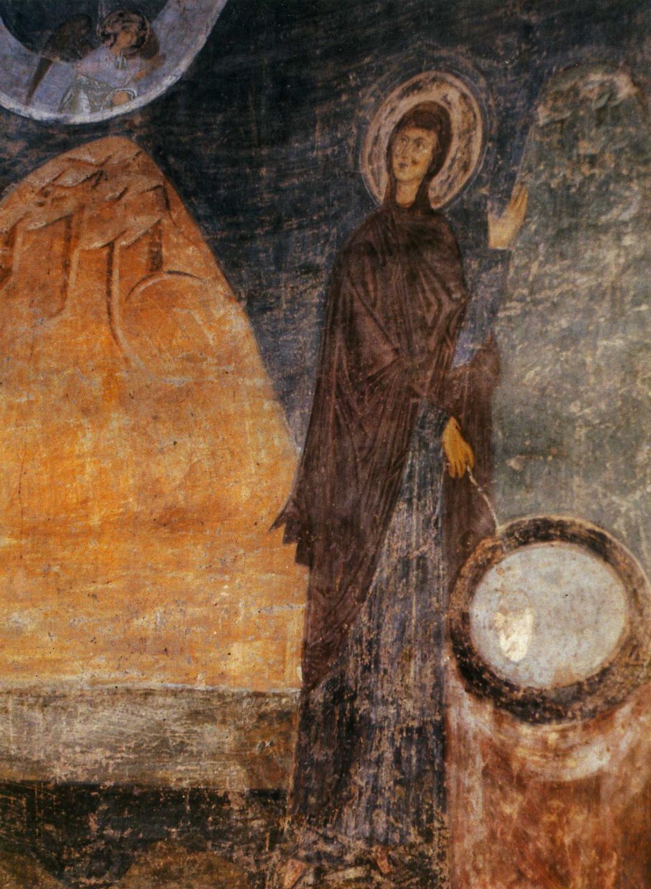 В Святій Софії Київській, на східних стовпах поміщений надзвичайно виразний образ Благовіщення, який несе в собі цікавий символізм.