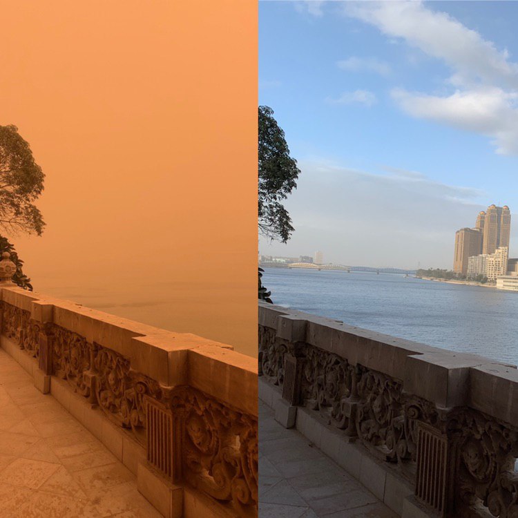 Местные жители спасаются тем, что надевают аптечные маски, кутают лицо. После недолгой прогулки от дома до работы во рту, ушах, носу песок. Видимость нулевая. Оттого в Каире почти бесполезно подметать улицы и содержать здания в опрятном виде. Пустыня приходит в город без приглашения и безраздельно хозяйничает в нем.