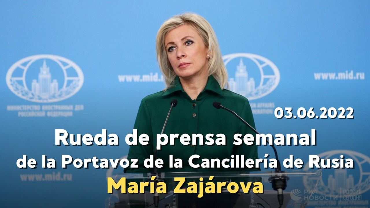 🎙 Declaraciones clave de la rueda de prensa semanal de la Portavoz de la Cancillería de Rusia, María #Zajárova (03.06.2022):
