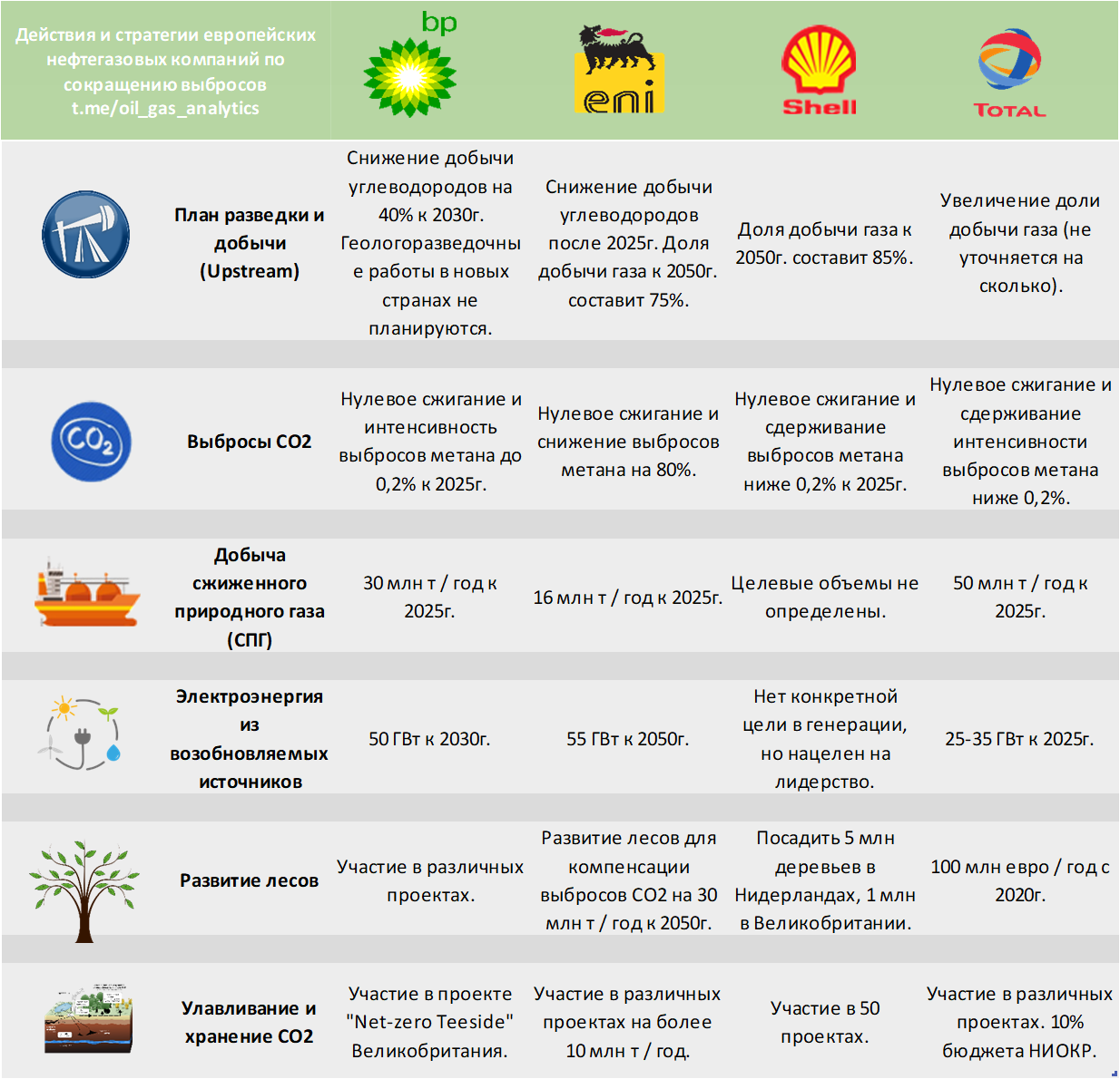 Однако на международном уровне подходы нефтяных компаний к этим вопросам различны. Крупные европейские нефтегазовые компании, такие как Eni, Shell, BP, Total и Equinor, наиболее готовы ответить на новые требования и играют центральную роль в переходном процессе. Я называю их «ЛУЧШИМИ (BEST: BP, Eni, Shell, Total). Их план действий и стратегии по сокращению выбросов, связанных с изменением климата, показаны в инфографике.