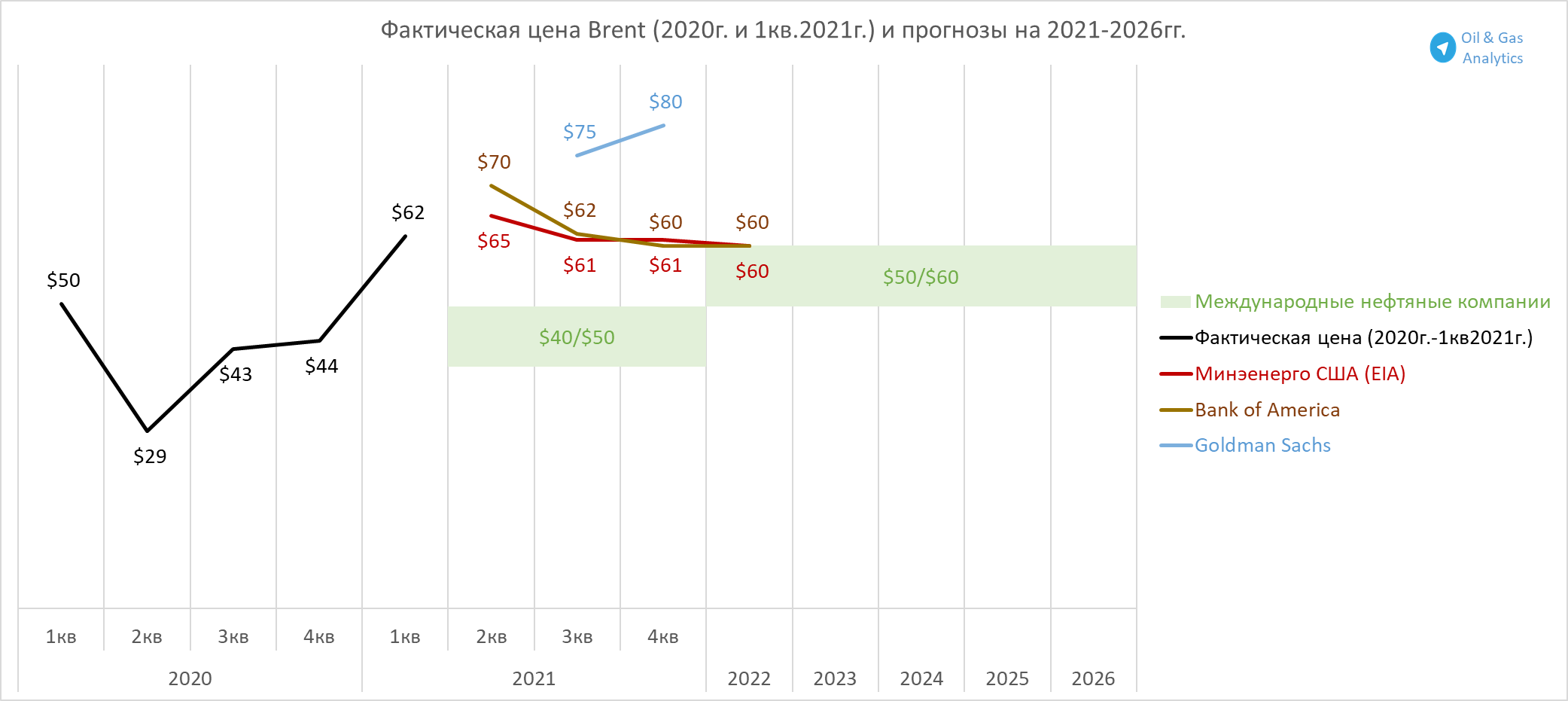 Средняя цена в 2021 году составит $62 за баррель, а в 2022 году - $60 за баррель.