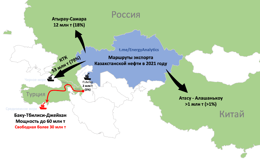 Потенциал нефтепровода Баку-Тбилиси-Джейхан (БТД) для экспорта казахстанской нефти