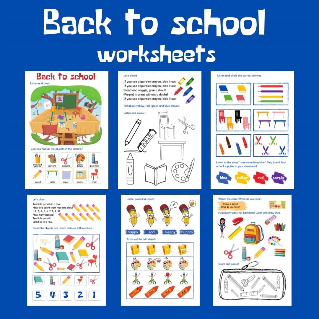 Изучаем школьные принадлежности, а заодно повторяем цвета, счёт, эмоции, практикуем простые диалоги.