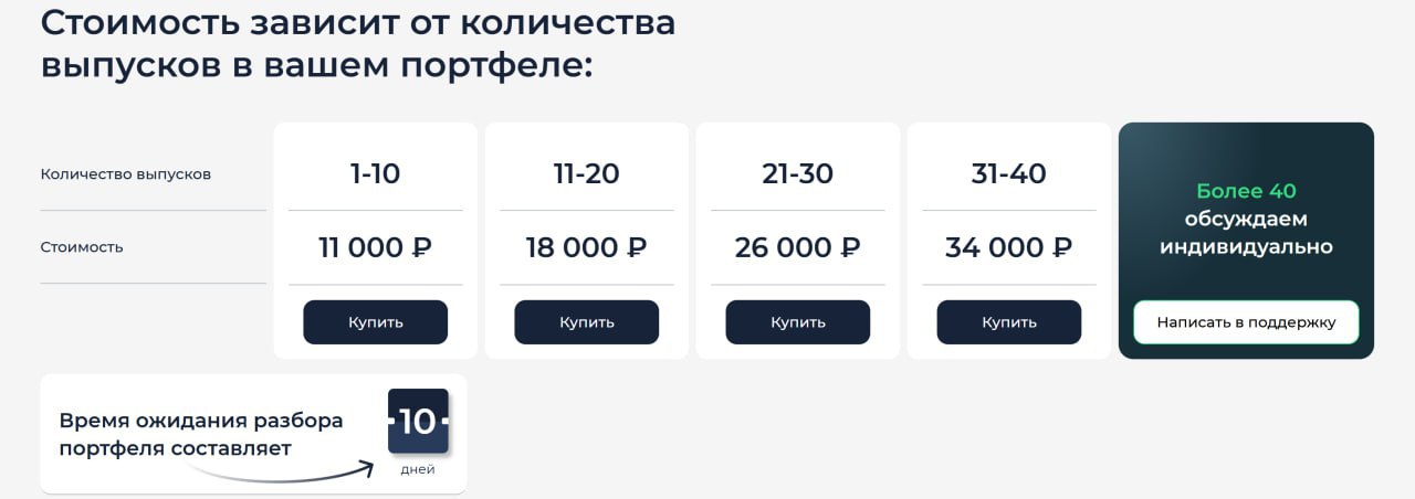 Стоимость зависит от количества выпусков в портфеле (указана на картинке под постом).