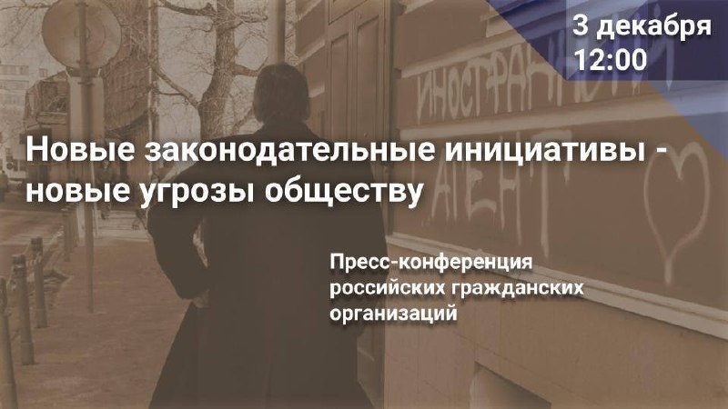3 декабря в 12:00 (просим обратить внимание на время) состоится пресс-конференция, на которой представители НКО расскажут о деталях планируемых нововведений и чем их принятие грозит НКО, общественным объединениям, СМИ, всем гражданам.