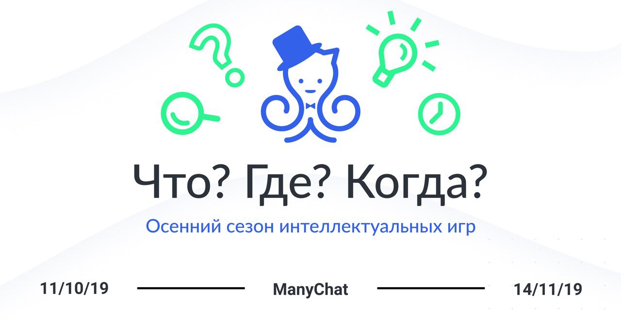 — Шикарное предложение от devrel’ов ManyChat’а для любителей интеллектуальных сражений принять участие в осеннем ИТ-турнире по «Что? Где? Когда?». Участников ждут две отборочных игры в октябре, ноябре и финал года, который состоится в декабре.