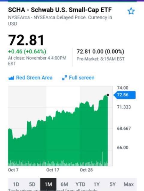 В начале октября приобрёл несколько долей в фонде компаний малой капитализации - SCHA. По цене закрытия на 4 ноября позиция в плюсе на 8.7%.