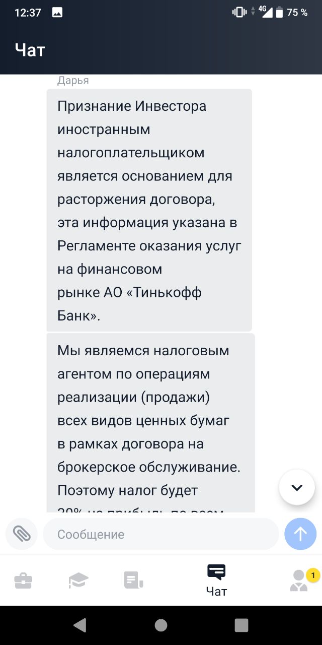 После сделок отписался в поддержку об утрате налогового резидентства РФ. Ответ оказался для меня неожиданным (см. скрин ниже). Сегодня мне должны сообщить, сохранят мой брокерский счёт или потребуют закрыть. Пока счёт в плюсе на 3.31%, и принудительная продажа меня не сильно расстроит.
