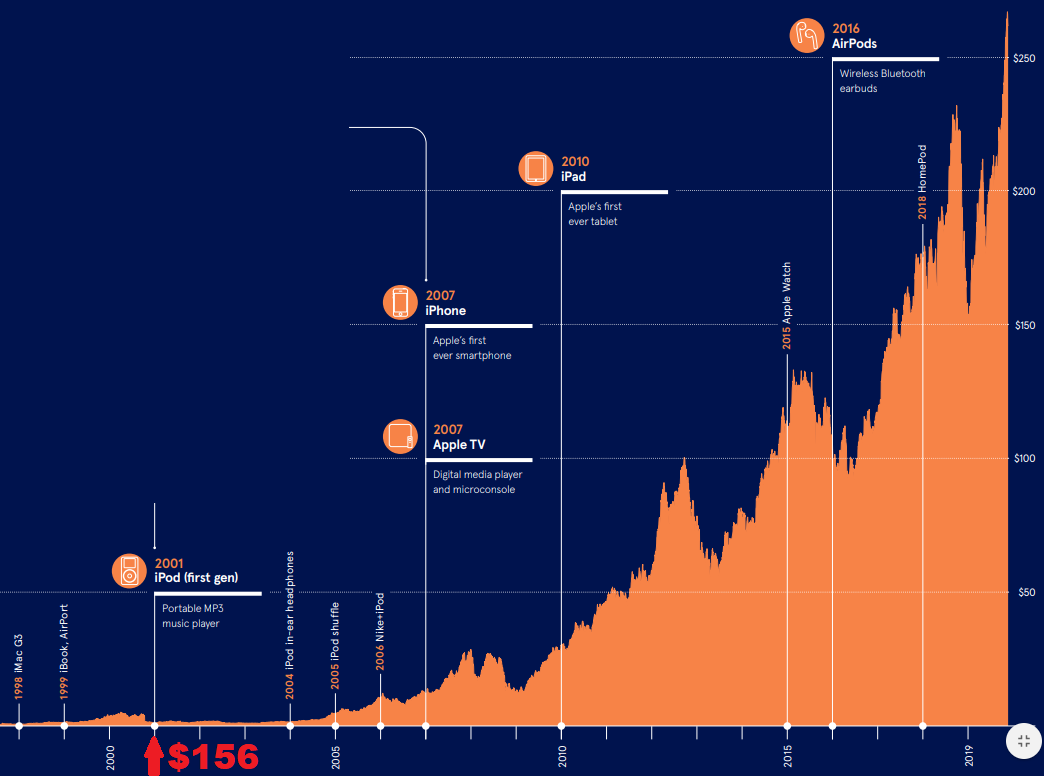 А я лишь отмечу, что 100 акций Apple, купленных по $1.56 в день презентации iPod в 2001 г. сегодня стоят примерно $29,000 и за это время ещё и принесли бы счастливому инвестору дивидендами $12,437 (без учёта налогов правда). Такие дела... ⬇️