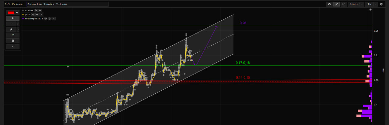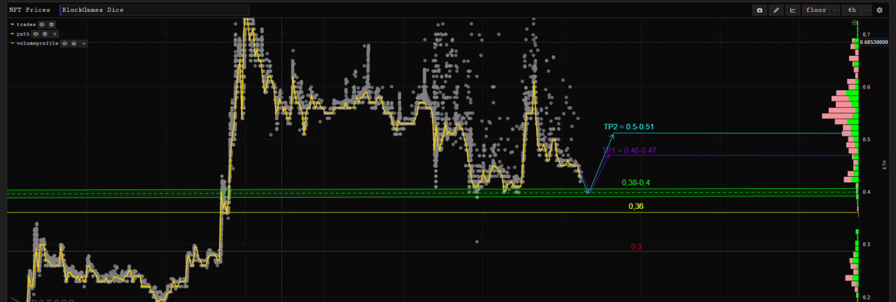 В этот раз всё смотрится положительнее - график. Сейчас пришли к хорошему уровню поддержки 0,4-0,42 и стараемся на нём удержаться, кстати не забывайте, что коллекция также хорошо торгуется по трейту. В случае пробития - можем откатиться к 0,36, но такое возможно только из-за появившегося фада или ухода всех китов на рождественские праздники.